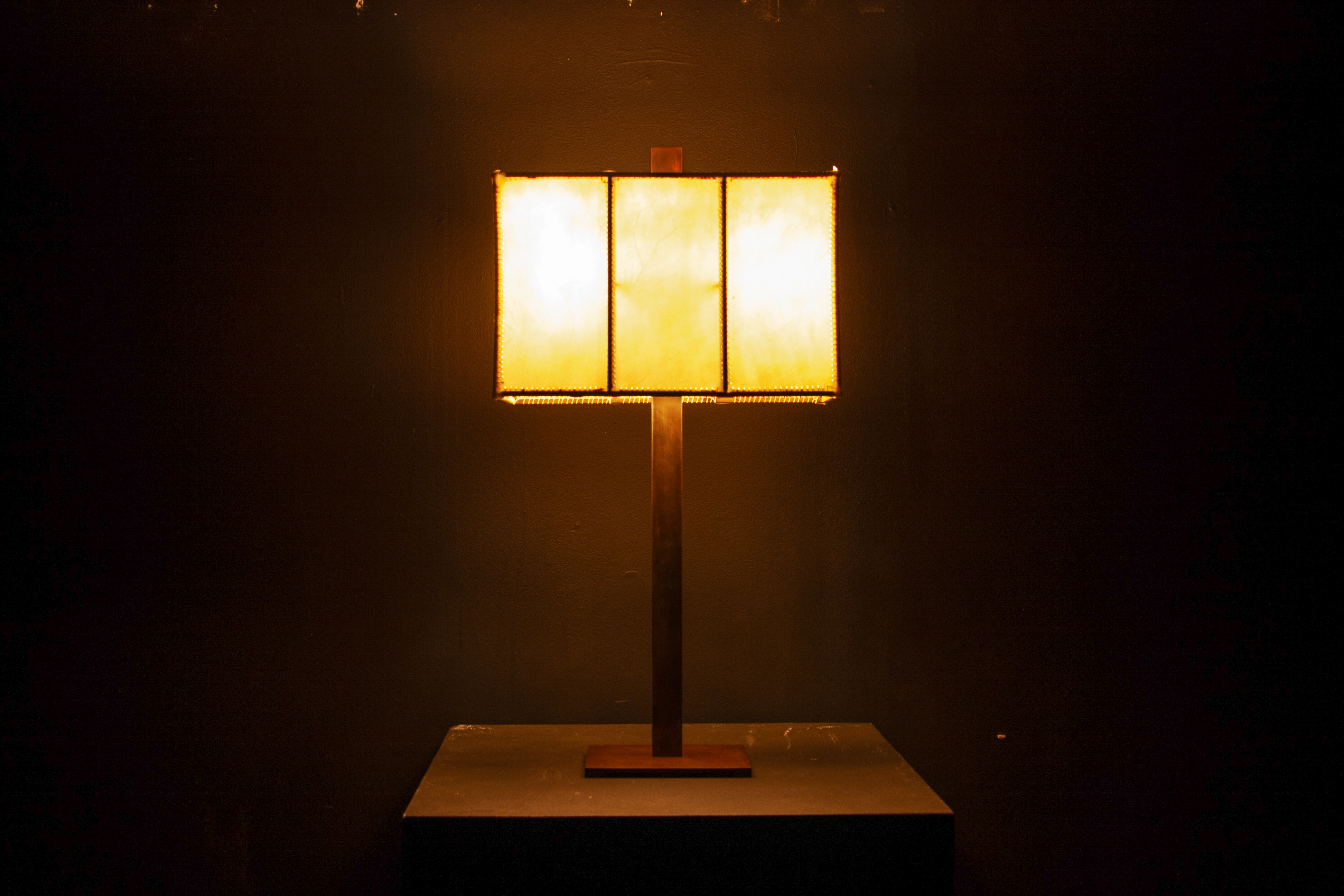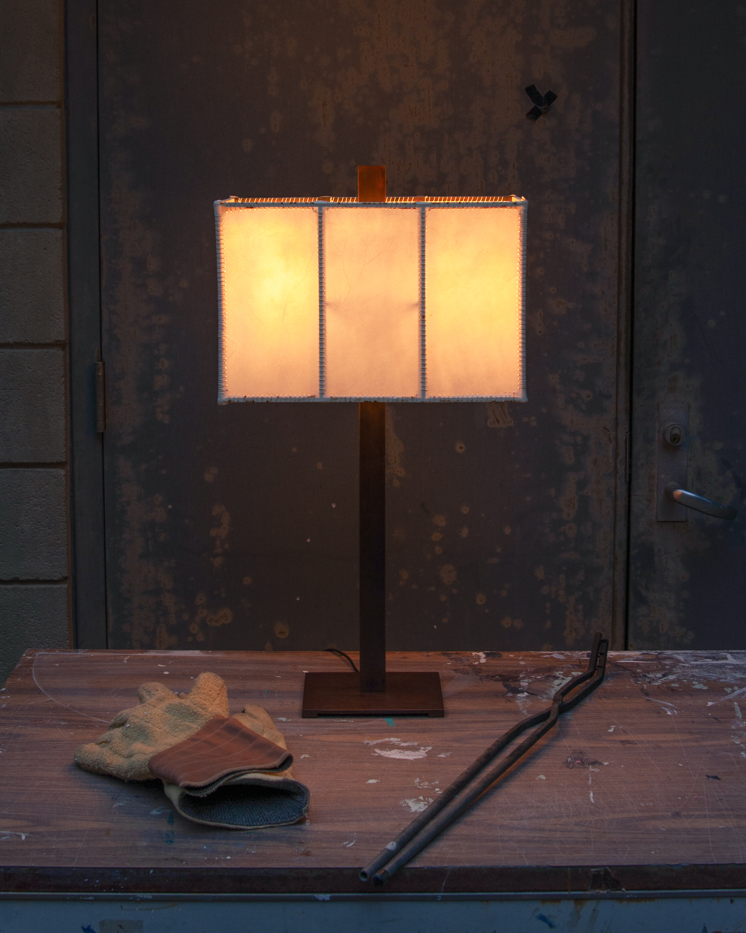 HANDMADE STEEL AND GOATSKIN LAMP